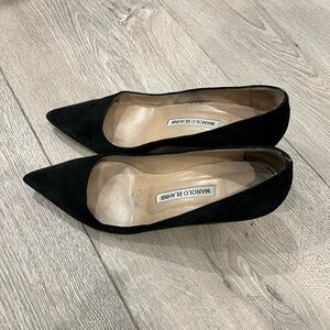 Chic black suede shoes by Manolo Blahnik. Ideal for stylish outings.