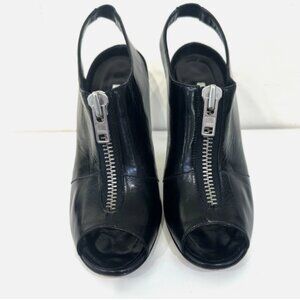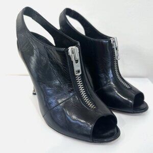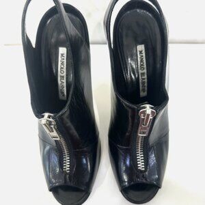 Manolo Blahnik Black Vella Slingback Pumps with Zipper Detail sz 37.5