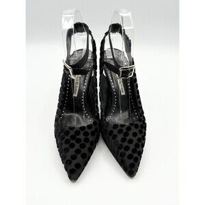 Manolo Blahnik Black Velvet Polka Dot Pointed Toe Slingback Heels Sz EU 37 7