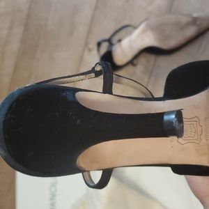 Manolo Blahnik Black Velvet and Grosgrain T-Strap Heals