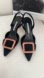 Chic black heels featuring a bold pink buckle. Sophisticated design by Manolo Blahnik.