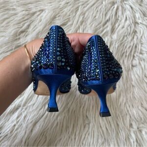 Manolo Blahnik Blue BB Crystal Satin 50mm Kitten Heel Pointed Toe Pump NWOB 36