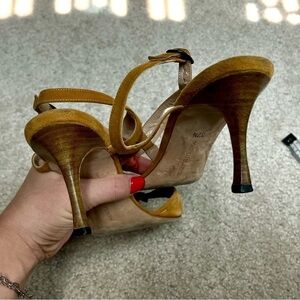 Manolo Blahnik Camel Suede T Strap Stitched Heel Sandals, US Women's 7, EU 37.5