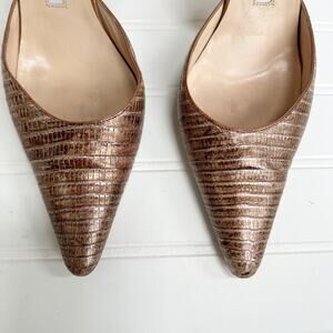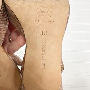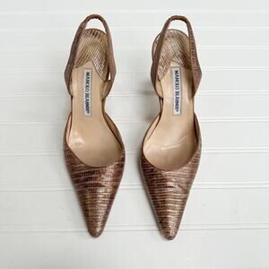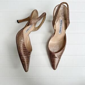 Manolo Blahnik Carolyne Rose Gold Metallic Python Slingback Heels Vintage 38