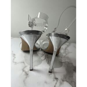 These Manolo Blahnik clear PVC and silver metallic sandals are perfect for adding a chic, modern touch to your evening ensemble. Ideal for special occasions, parties, or whenever you want to make a stylish statement.