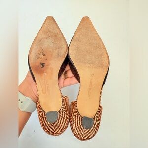 Manolo Blahnik Copper Brown Snakeskin Chevron Orange Fabric D'Orsay Tyler Pump EU 37