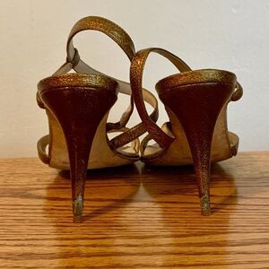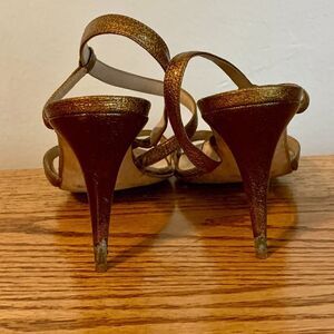 Beautiful golden bronze glitter Strappy sandals. In good condition with very minor wear (on heel)
