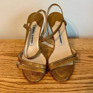 Manolo Blahnik Copper Gold 2000s y2k Strappy heels 36 Sandal Stiletto Carrie