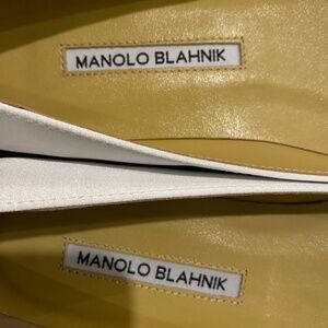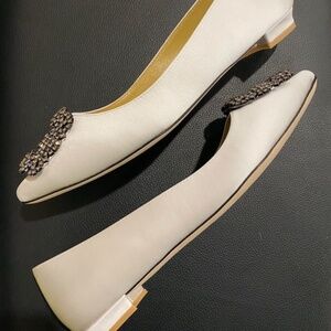Manolo Blahnik Crystal Embellished Hangisi White Bridal Lace Buckle Classic Flat