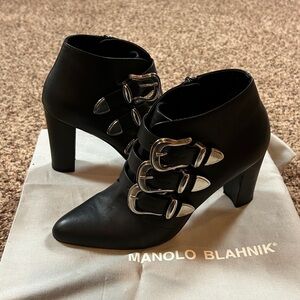 Manolo Blahnik EU 38. EUC Black ankle silver buckle boot