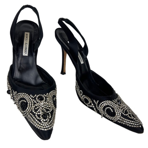 Manolo Blahnik Embellished Jewel Encrusted Crystal Carolyne Slingback Pumps