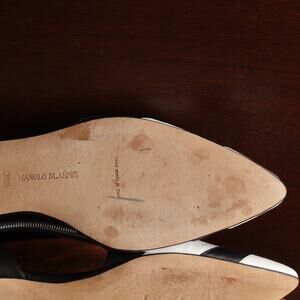 Manolo Blahnik Flats WMS SZ EU 39.5 US 9.5 BLK White Leather D'Orsay Modern Shoe