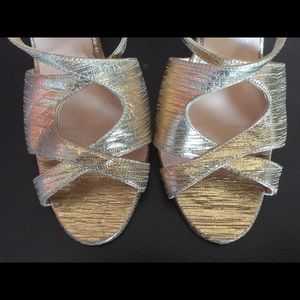 Manolo Blahnik Gold Heel w/ Ankle Strap. Size 37.