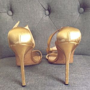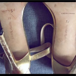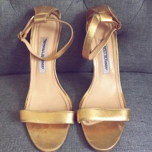 Manolo Blahnik Gold Metallic Ankle Strap Heels