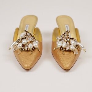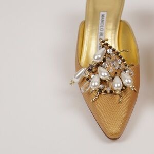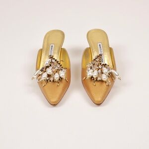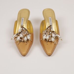 Manolo Blahnik Gold Pearl Beaded Accents 36