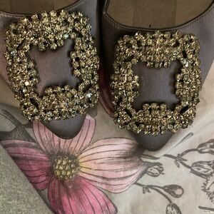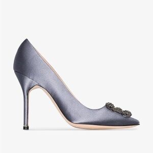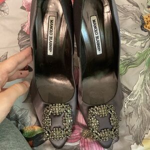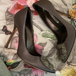 Manolo Blahnik Gray Heels with Embellished Buckle