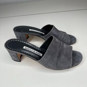 Manolo Blahnik Gray Rapallato Soft Suede Banded Block Heel Slide Sandals 37.5