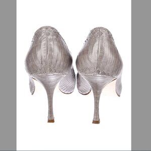 Manolo Blahnik Gray Snakeskin Pointed Toe Pumps