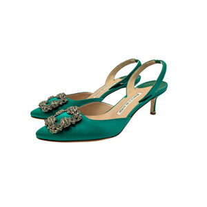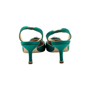Manolo Blahnik Green Satin Hangisi 50 Slingback Pumps Size 37