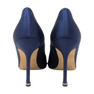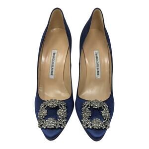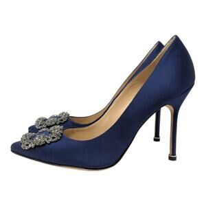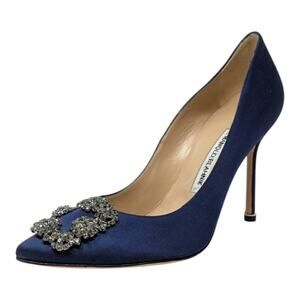 Manolo Blahnik Hangisi 105 crystal embellished pump heel navy blue satin 38.5