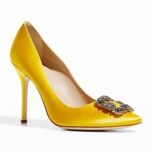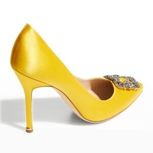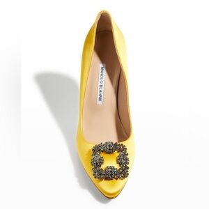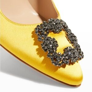 New in box Manolo Blahnik Hangisi Crystal Buckle Satin Pumps