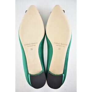 Manolo Blahnik Hangisi Emerald Green Satin Jewel Buckle Ballerina Ballet Flat 36