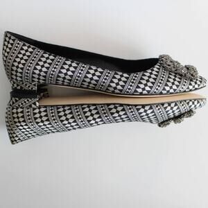 Manolo Blahnik Hangisi Patterned Jacquard Crystal Buckle Ballerina Flats