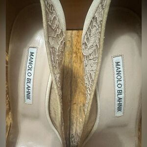 Lace Hangisi Manolo Blahnik Heels. 100% Authentic. Size 40. Almost new besides the residue on the bottom of the shoe from shoe grips. #luxury #carriebradshaw #satc
