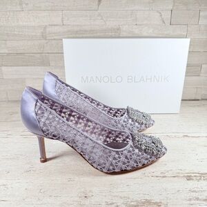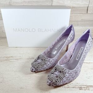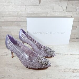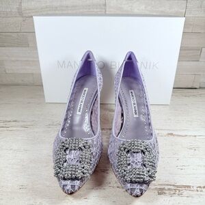 NEW Manolo Blahnik Size 38 Lace Hangisi 70MM Pumps Heels Periwinkle $1295