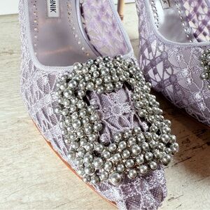 Manolo Blahnik Hangisi Size 38 Lace 70MM Pumps Heels Lilac Periwinkle $1245 New