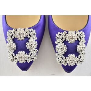 Manolo Blahnik Hangisi Violet Purple Satin Jewel Buckle Ballerina Ballet Flat 37