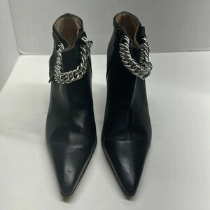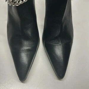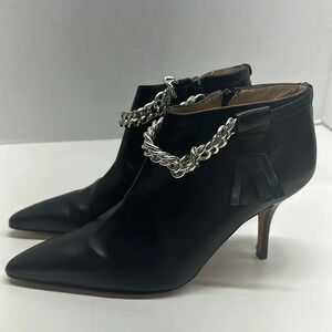 Manolo Blahnik Black Leather Silver Color Chain Tassel Detail Pointed Toe Ankle Boots / Booties