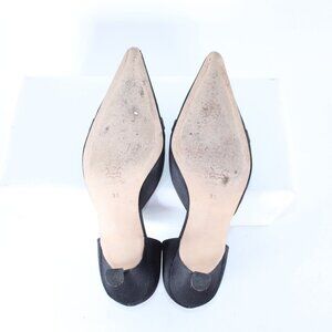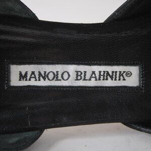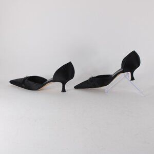 Manolo Blahnik Heels Floran Sz 38 Black Rhinestones Satin Leather Kitten 1.5"