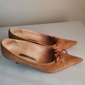 Manolo Blahnik Heels Pointed Toe Tan Suede Made in Italy Shoes 40