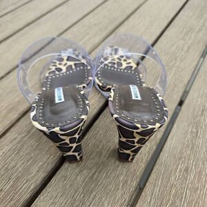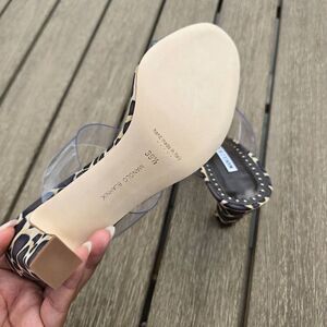 Manolo Blahnik High Heel Sandals Women's Size 9.5B Black Leopard Print Slip On