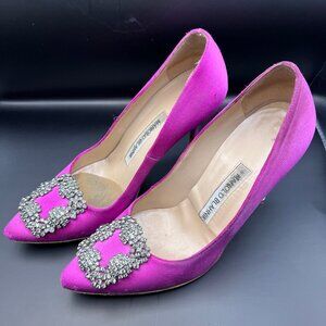 Manolo Blahnik Jewel Pumps 4” in pink.