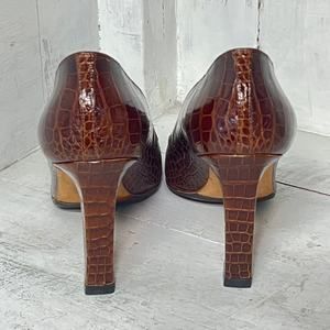 Manolo Blahnik Kayami Alligator Leather Slip On Heeled Pumps Chocolate Womens 39 / 8