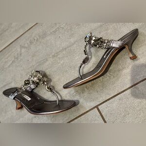 Manolo Blahnik Kitten Heel Immro Jeweled Silver Thong Heels Barely Used Size 7