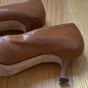 Genuine brown leather kitten heels from Manolo Blahnik. Very "quiet luxury/old money". Scuffed from wear but lots of life left!!