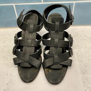 Manolo Blahnik Leather Gladiator Sandals Stiletto Heels Black 40.5 Multistrap