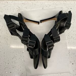 Manolo Blahnik Leather Gladiator Sandals Stiletto Heels Black 40.5 Multistrap