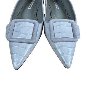 Manolo Blahnik Maysale Pump Flat Light Gray Pointed Toe Size EU 41.5