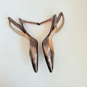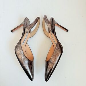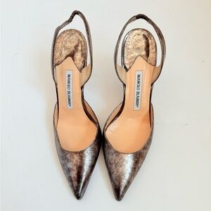 Manolo Blahnik Metallic Pale Gold/ Copper Carolyne Slingback 90mm heels EU 38.5