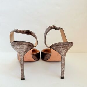 Manolo Blahnik Metallic Pale Gold/ Copper Carolyne Slingback 90mm heels EU 38.5