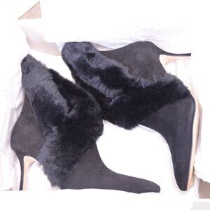 Made in Italy, Size: 38.5 EU, Color: Black, Fur Trim: Black, Heel Height: 3.5 inches (8.9cm)