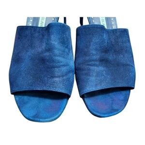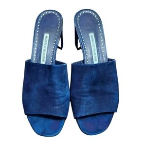 Manolo Blahnik Navy Blue Rapallato Soft Suede Banded Block Heel Sandals Shoes Size EU 40/US 9.5