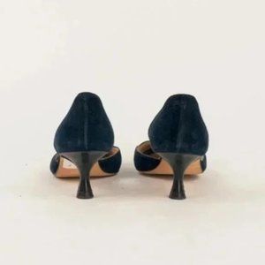 Manolo Blahnik Navy Suede Bow Kitten Heels
