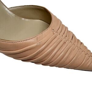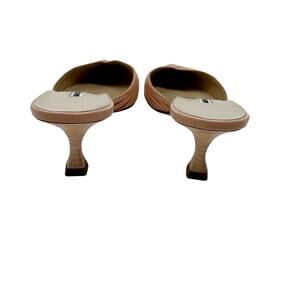 Manolo Blahnik Nude Ruched Leather Mules Size 37 | Designer Kitten Heel Slip On