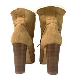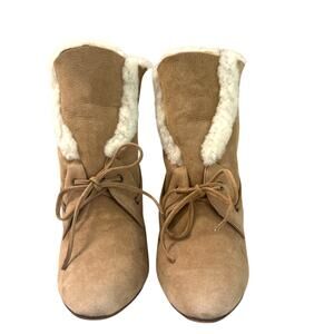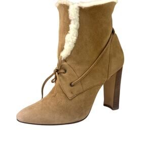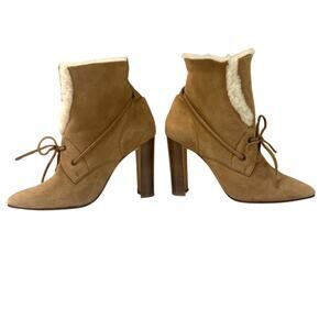 Manolo Blahnik Ostrava Camel Suede Shearling Ankle Boots Size IT 37 / US 7