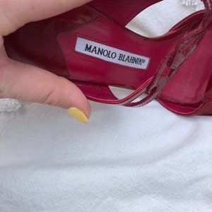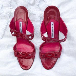 Manolo Blahnik Patent Red Stiletto Mule Heels